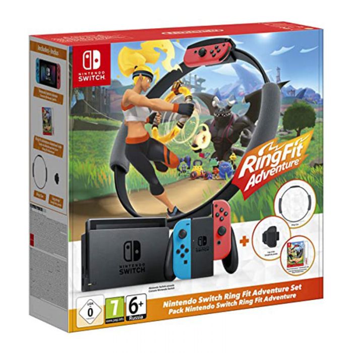 Console de Jeux NINTENDO SWITCH + Jeux Ring Fit Adventure - Écran: 6,2" LCD Tactile - Résolution: 1280 x 720 pixels - Processeur: NVIDIA Custom Tegra - Capacité de Mémoire: 32 Go Extensible via une carte microSD - Sortie audio: PCM linéaire 5.1 - Batterie: lithium ion - Capacité de la Batterie: 4310 mAh - Autonomie de la batterie: Entre 4,5 et 9 heures - maximum en fonction du jeu - Connectivité: Wi-Fi, Bluetooth 4.1 - Connecteurs: USB Type-C,prise audio 3.5 mm - Poids: 297g - Garantie: 1an