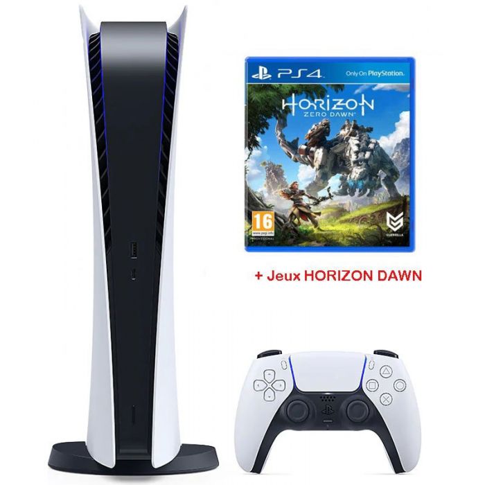 Playstation 5 Edition Digitale - Processeur: AMD Ryzen Zen 2 - Chipset graphique: AMD RDNA 2 10.28 TFLOPs - Mémoire RAM: 16 Go GDDR6 - Stockage: 825 Go SSD - Console Ultra HD 8K - Lecteur optique: 4K Blu-ray - Framerate max: 4K/120fps - Audio: 3D, moteur Tempest - Manette avec retour haptique, gâchettes adaptatives, port USB-C - Connectivité: Wifi, Bluetooth, Réseau Gigabit - Dimensions : 390 x 104 x 260 mm - Poids 4.5 KG - Garantie: 1 an